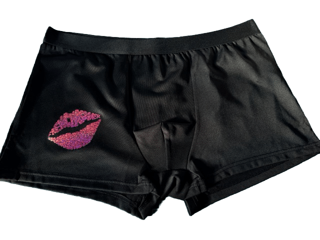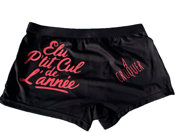 Description produit : Caleçon Homme Noir inscription pailleté rose- Élu p’tit cul de l’année